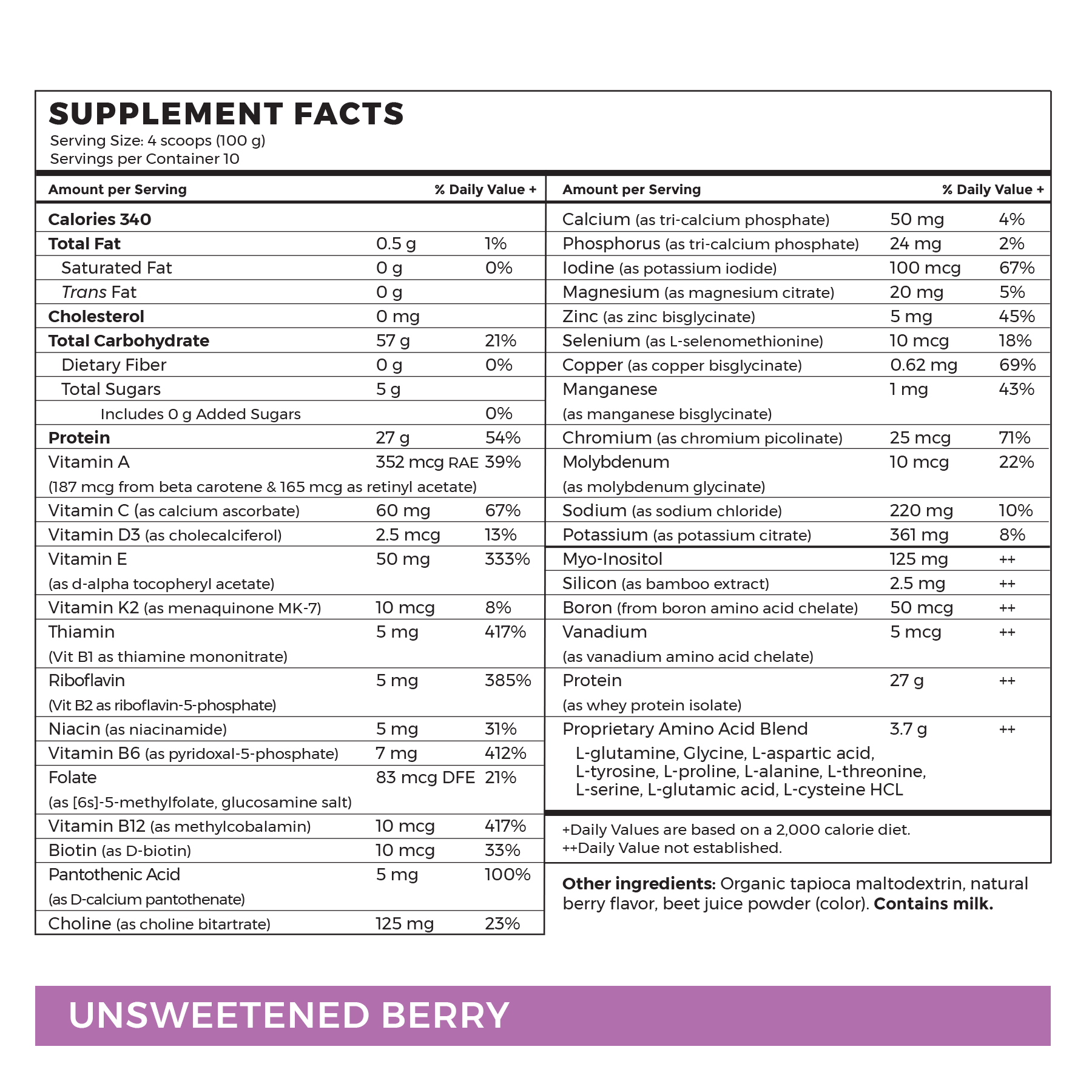 - Protein Source: Whey Protein Isolate (milk) – lactose and casein free